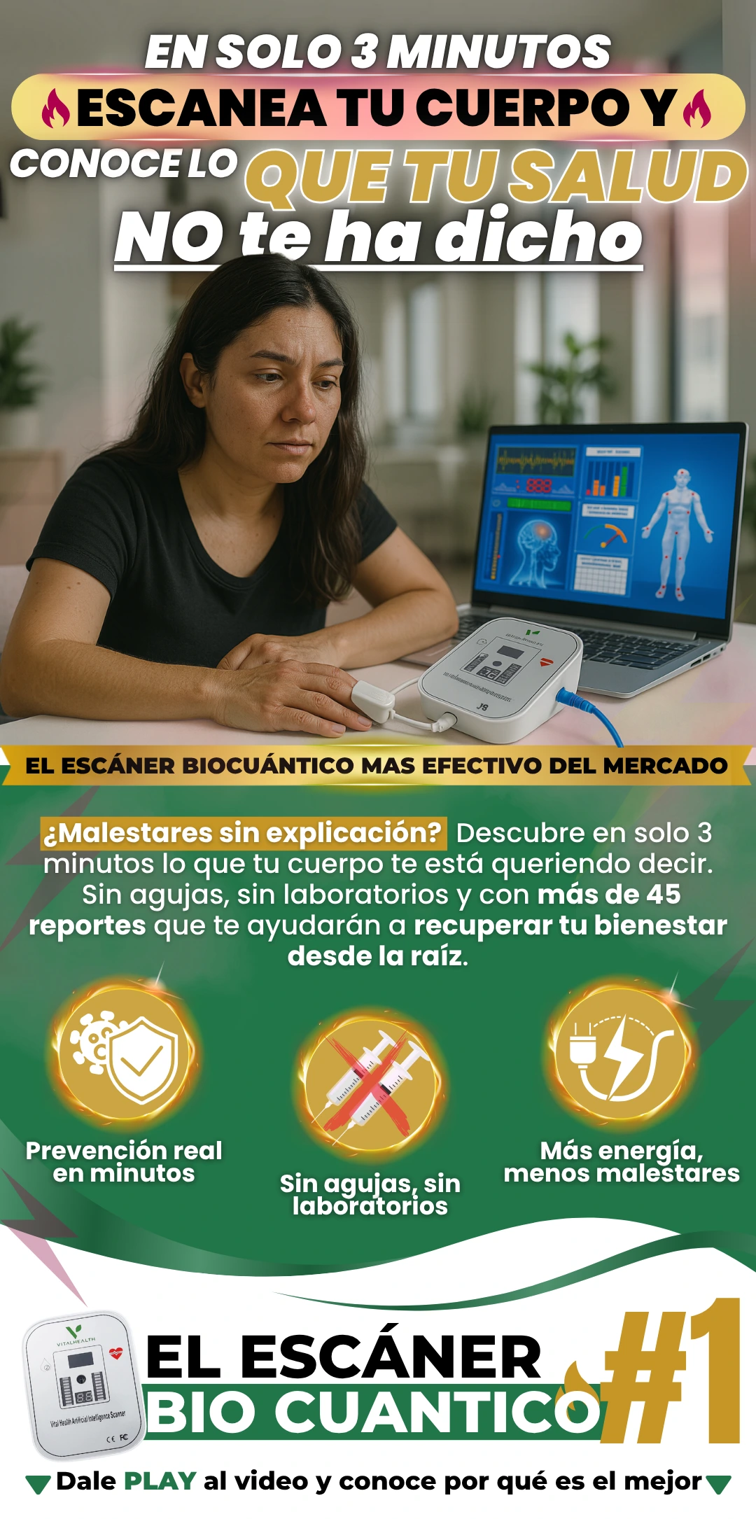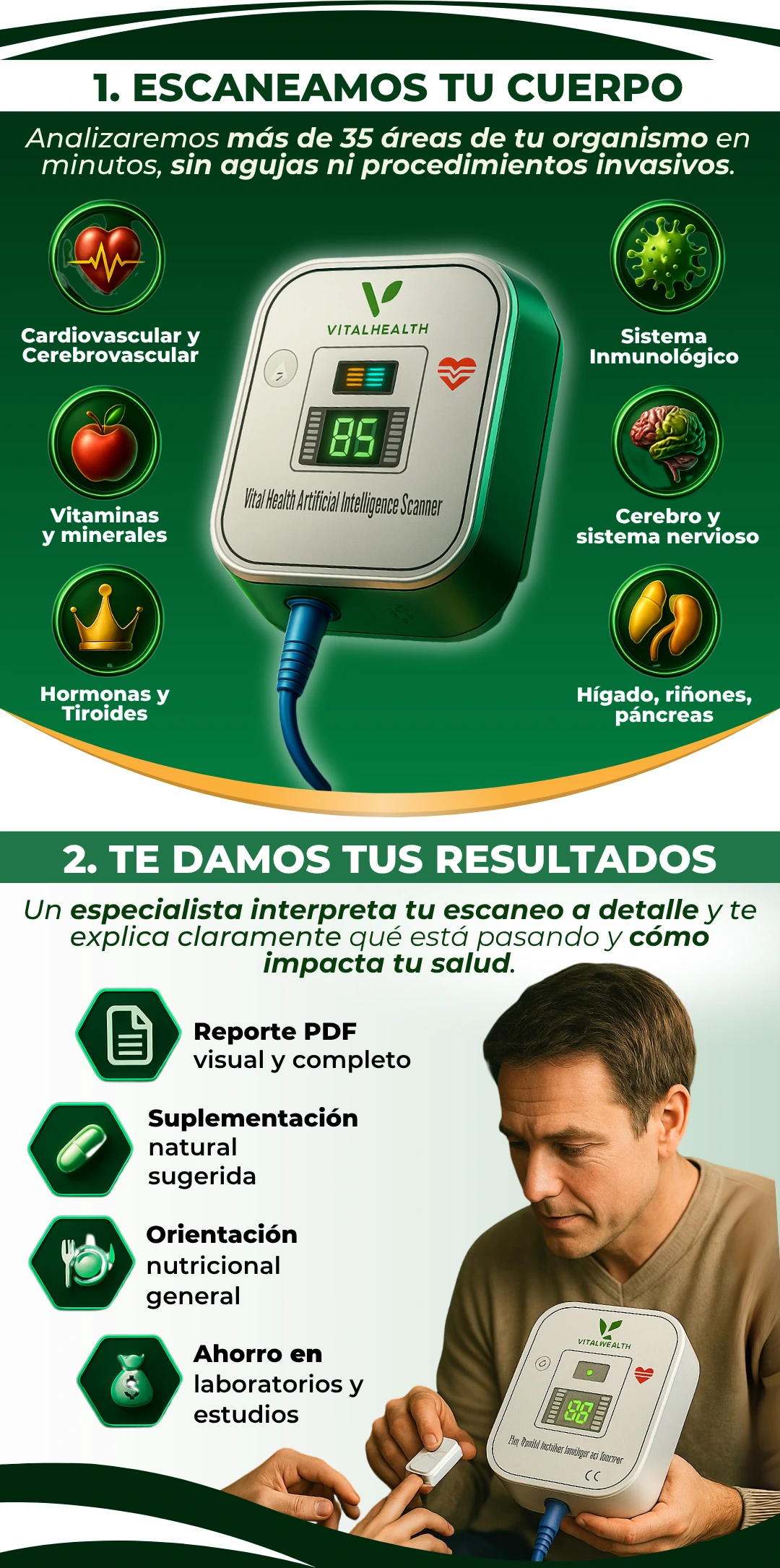 No. Es totalmente indoloro, no invasivo y toma solo unos minutos. Funciona mediante sensores bioeléctricos que leen el estado energético del cuerpo.