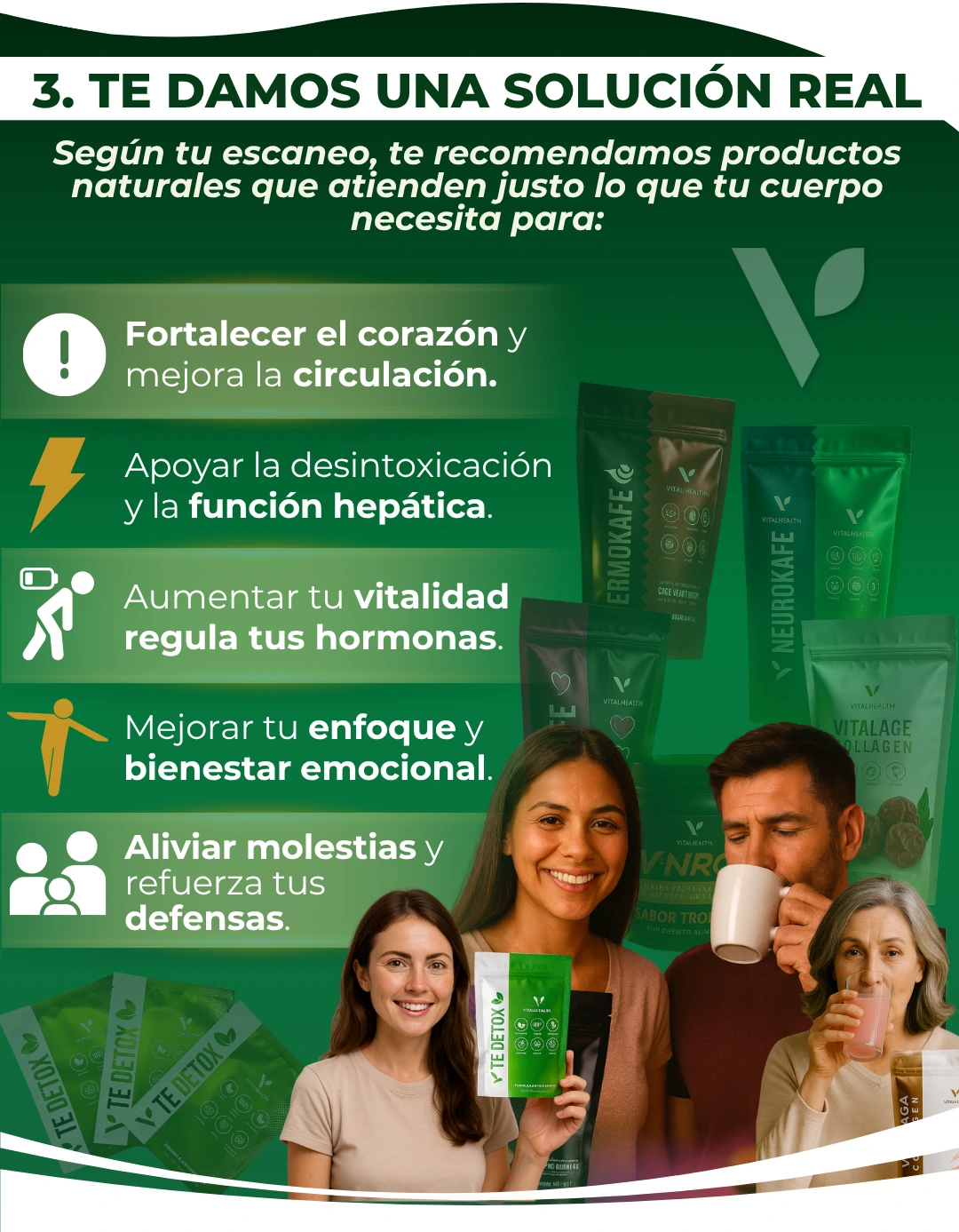 Recibes un análisis completo y personalizado. Según los resultados, te recomendamos productos específicos para ayudarte a corregir los desequilibrios y lograr los resultados que deseas.